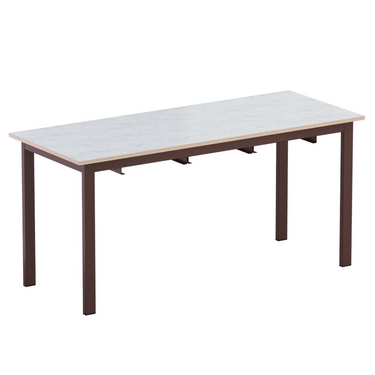 Стол изготавливается на металлическом каркасе прямоугольного сечения, покрытого стойкой к химическим и механическим воздействиям полимерно-порошковой краской, на свободных концах труб установлены заглушки из ударопрочных полимеров.