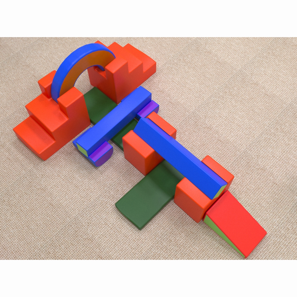 Представленный набор мягких модулей является своеобразным «гибридом» версий спортивных комплексов «Полоса препятствий-1» и «Полоса препятствий-2» из ассортимента нашего каталога – она компактнее, чем «Полоса препятствий-2», но намного более функциональна, чем обе предыдущие версии; имеет в составе большее количество мягких модулей. Представляет из себя набор разноцветных модулей различной формы (горка, полукольцо, брус, подставки и ступеньки сложной формы, маты прямоугольные), которые составляются нужным образом - получается единая «полоса препятствий». Плюсом является бескаркасная конструкция модуля (это помогает избежать травмирования ребёнка), как и мягкий, упругий наполнитель, который также устойчив к разрывам и повреждениям. Покрытие легко моется.
