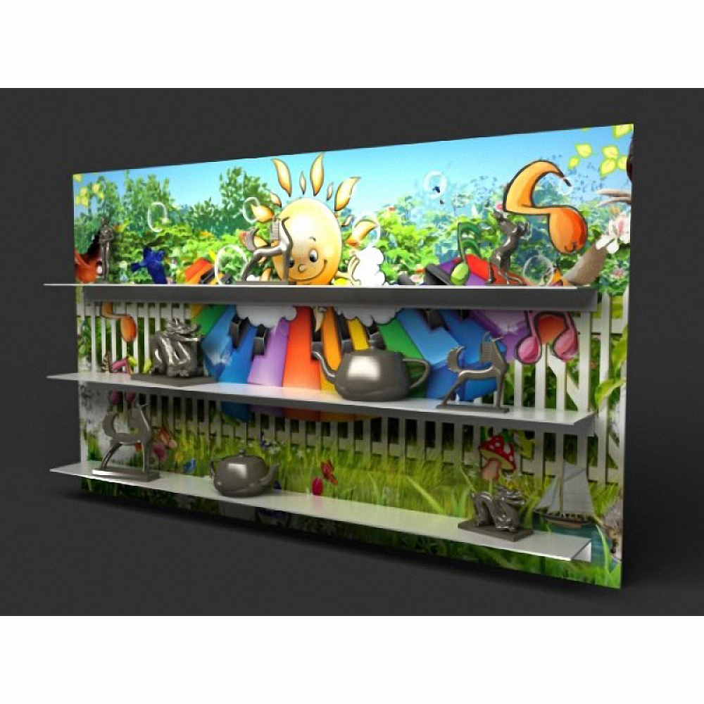 Отличительной особенностью этого стенда является его объемный дизайн. Благодаря большим полкам можно разместить много творческих поделок детей. Стенд имеет яркий фон, который привлечет внимание взрослых и детей. Дети увидят яркое солнце, которое играет на разноцветных клавишах пианино. Стенд выполнен из высококачественных материалов. Полки крепкие, позволяют расположить поделки даже самой многочисленной группы детей детского сада. Дети любят после занятия нести свои работы на выставку. Данный стенд отлично справится с этой задачей. Родители, приходя за детьми в детский садик, будут видеть результат их творчества.