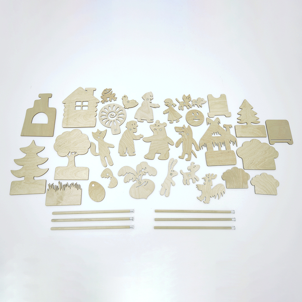 Театр теней комплектуется персонажами русских народных сказок: колобок, репка, Маша и медведь, Курочка Ряба, теремок, лиса и волк, заяц и петух. Через театрально-игровое творчество мы можем развивать в детях эмоциональную отзывчивость, интеллектуальность, коммуникативные навыки детей, артистизм, речевую активность. Наш театр получил широкое применение в работе с детьми с особенностями развития.