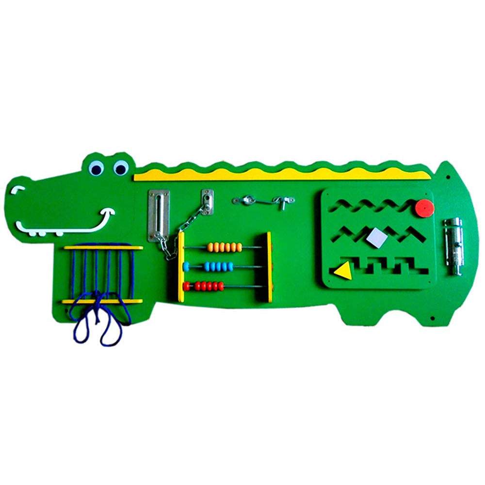 Бизиборд в виде зеленого крокодильчика №1 прекрасно подойдет для занятий с детьми в дошкольный учреждениях, школах, а также детских центрах, радуя детей изо дня в день, как в большой компании, так и в одиночестве.
