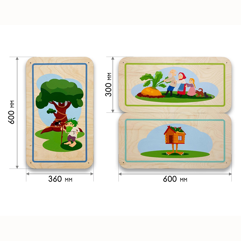 Дополнительные модули бывают однотонные и с тематическими иллюстрациями, подходящими под тематику дидактических панелей. Разнообразие размеров способствует декорированию стен различной конфигурации и масштабов. Параметры варьируются от совсем маленьких модулей 300х300 мм до крупных размеров 600х600 мм.
