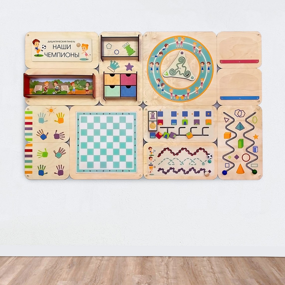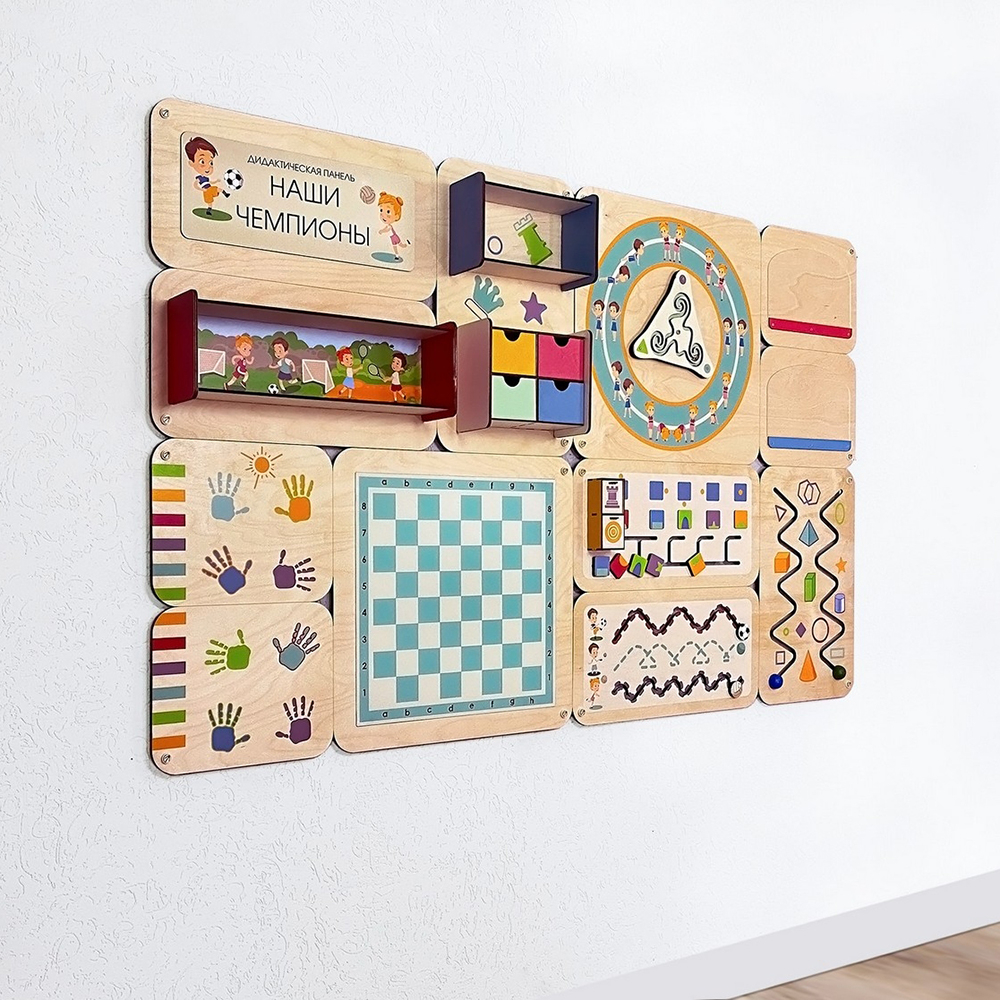 - Дети развивают физическое здоровье и готовятся к школе в лёгкой игровой форме. Занятия с панелью «Наши чемпионы» улучшают координацию движений, крупную и мелкую моторику, развивают логическое мышление.