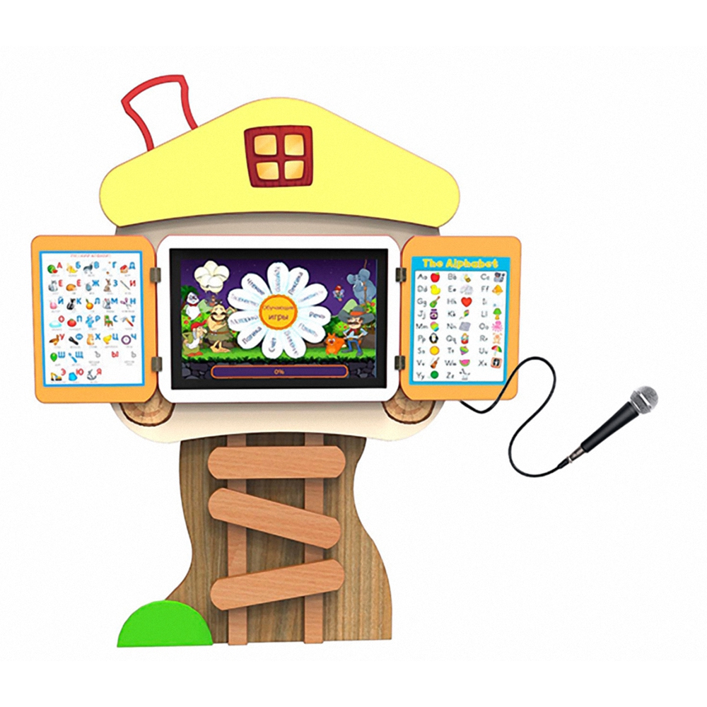 Также в наличии клавиатура беспроводная, кабели Usb 2.0 и HDMI. В «Теремок» встроена акустика с частотным диапазоном 80 – 18 000 Гц, сенсорный планшет 25" дюйма, поддерживающий до 10 одновременных касаний.