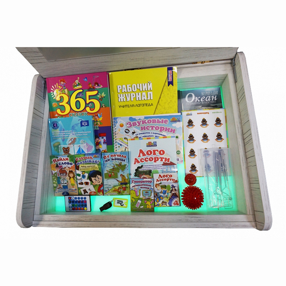 Логопедический сундучок помогает специалистам в развитии речевого дыхания и звукопроизношения у ребенка, развитию внимания, памяти и логического мышления, развитию навыков чтения и письма. Занятия с интерактивным песком помогают в развитии мелкой моторики, способствуют положительному настрою ребенка, формированию творческих способностей и эстетическому развитию.