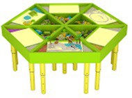 Крышка стола имеет магнитно-маркерную поверхность, на которой дети могут писать, рисовать разноцветными фломастерами, лепить, изучать цифры и буквы, играть, создавать различные истории из магнитных карточек, собирать пазлы, а потом легко стереть или убрать результаты своего творчества. При такой организации учебного процесса, будут задействованы все дети , и каждый из них, будет чувствовать свою значимость, и сможет выразить свои чувства и эмоции.