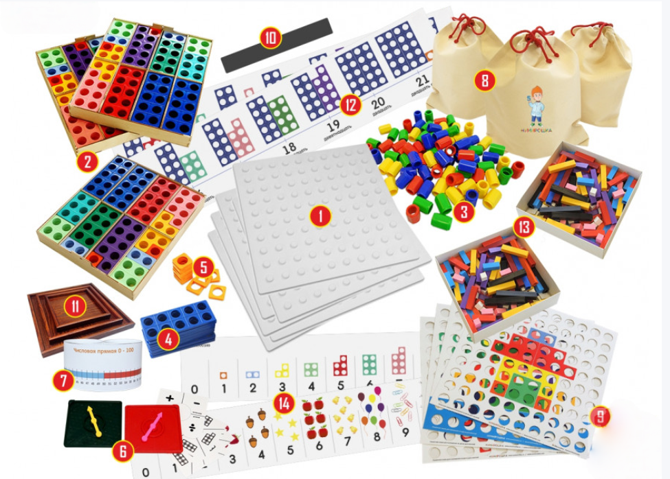 Базовый набор для групповых занятий с детьми младшего возраста от 3 до 5 лет Нумирошка – хороший выбор для детского сада или оздоровительного центра, где занятия проводятся в группе детей. Данная система поможет детям обучиться базовым математическим навыкам, а также развить усидчивость, мышление, тактильность.