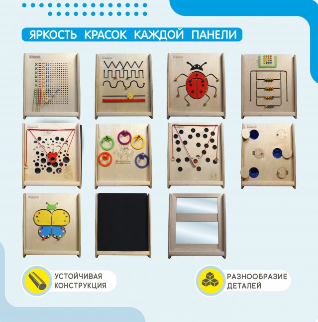 Комплект Монтессори: игровые панели малые с напольным основанием (12 шт.)