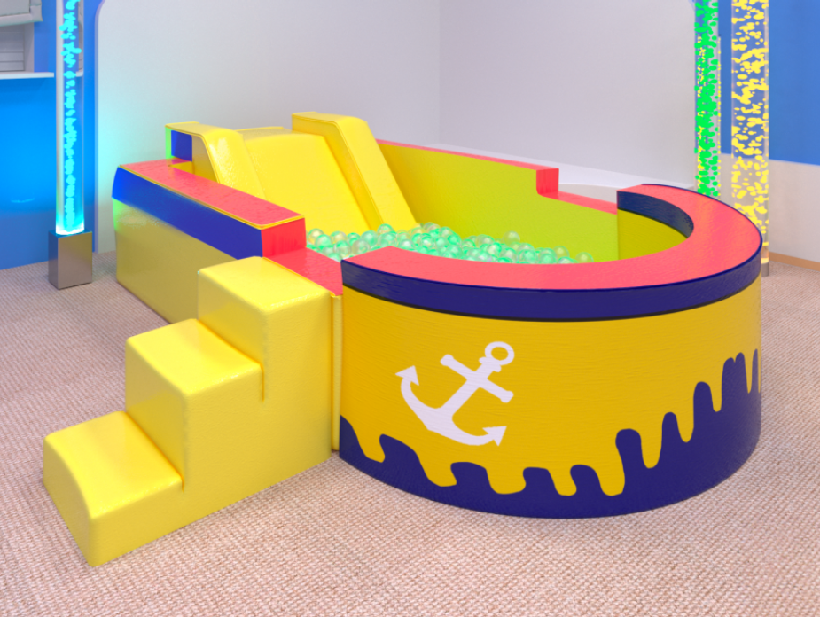 Бассейн сухой фигурный разборный в виде причала – безошибочно верное решение для организации детского игрового пространства в дошкольном учреждении образования, центре реабилитации для детей с ограниченными возможностями или развивающих детских центрах.