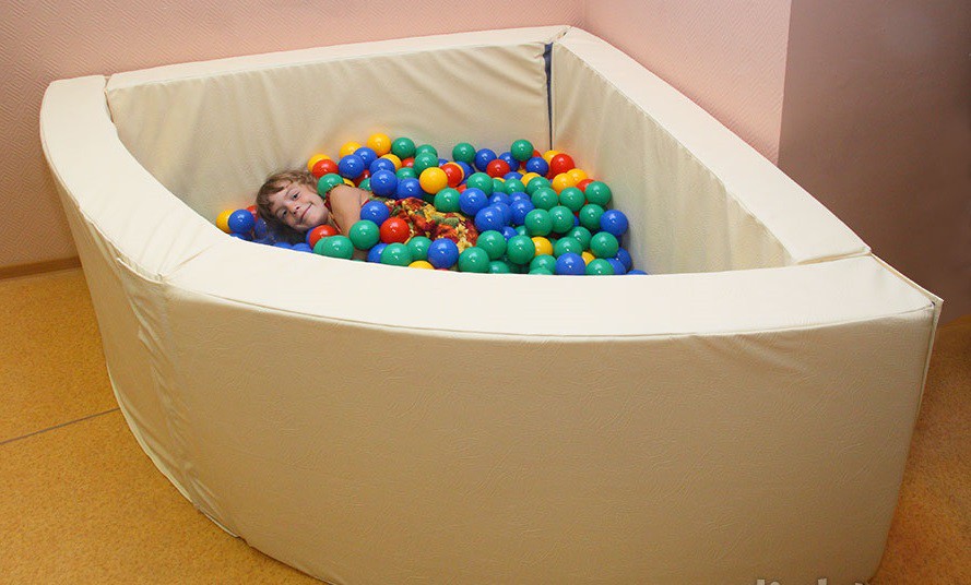Главная Каталог Оборудование для сенсорных комнат Бассейн с шариками Сухой бассейн в форме 1/4 круга (150х150х66 сантиметров)