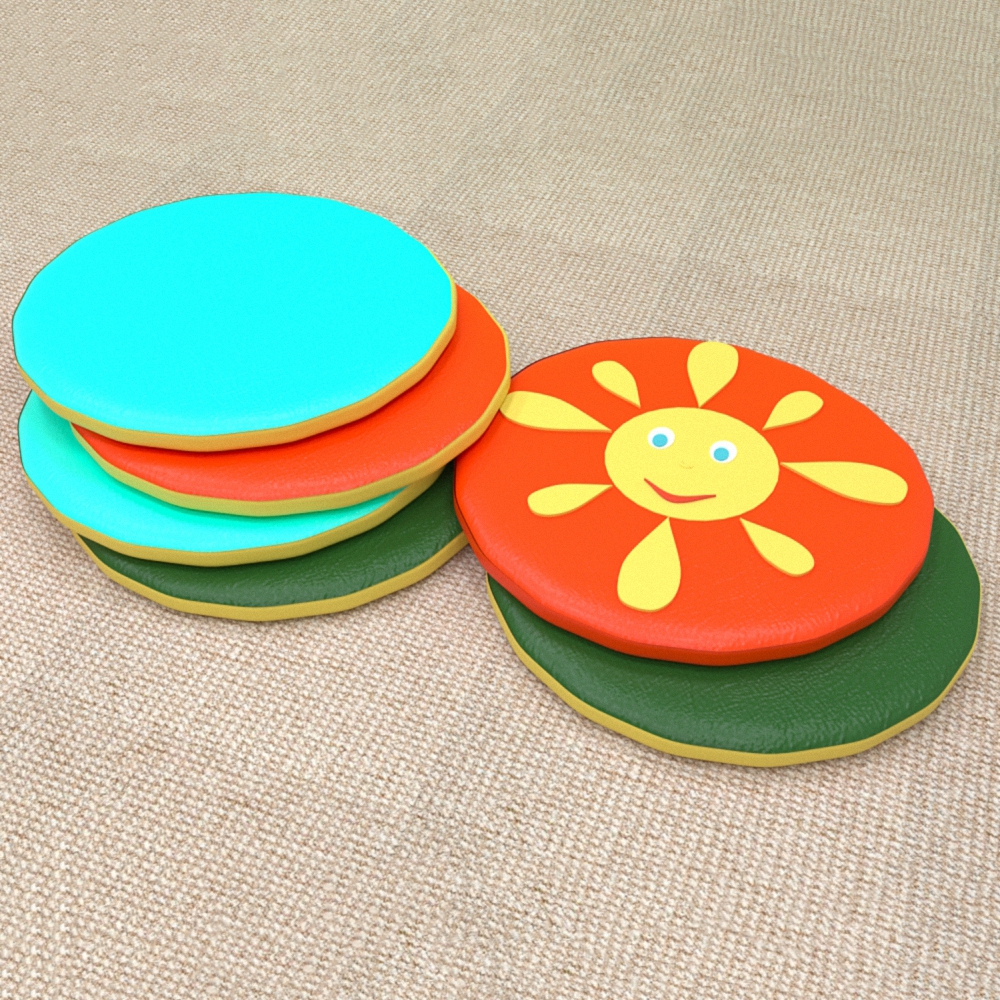 Игровой набор Солнышко - спортивно-игровая разновидность детских бескаркасных модулей. Внешне представляет из себя набор мягких поролоновых дисков одинакового диаметра и разных по толщине. Диски не соединены между собой, что позволяет свободно перемещать их в пространстве с целью составления различных комбинаций для выполнения упражнений – по разложенным на полу дискам можно просто ходить, обучаясь соблюдению равновесия и тренируясь сохранять правильную осанку, или перепрыгивать её поперёк, использовать дорожку в качестве своеобразного рубежа, через который нужно перекинуть предмет (мячик, грузик - мешочек с наполнителем) – широта диапазона использования зависит от фантазии педагога; кроме этого, набор «Солнышко» используется для изучения цветов. Несомненные плюсы этой дорожки – отсутствие твердого, жесткого каркаса и наличие мягкого, упругого наполнителя.