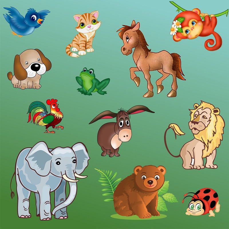 На панели изображены 12 существ: Птица, кошка, обезьянка, собачка, лягушка, лошадка, петух, ослик, лев, слон, медведь, божья коровка. Фон панели: зеленый.  При пркосновении к  животному, птице, насекомому или земноводному раздается характерный для него звук. Возможность воспроизведения нескольких звуков одновременно. Отсутствие кнопок на лицевой панели. Возможность крепления к стене.
