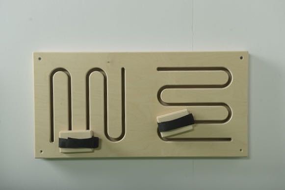 Изделие предназначено для развития двигательных навыков. Панель может устанавливаться как на столе, так и крепиться к стене на удобной высоте. Ребенок надевает крепления либо на руки, либо на ноги, и проводит рукой или ногой от начала до конца лабиринта.
