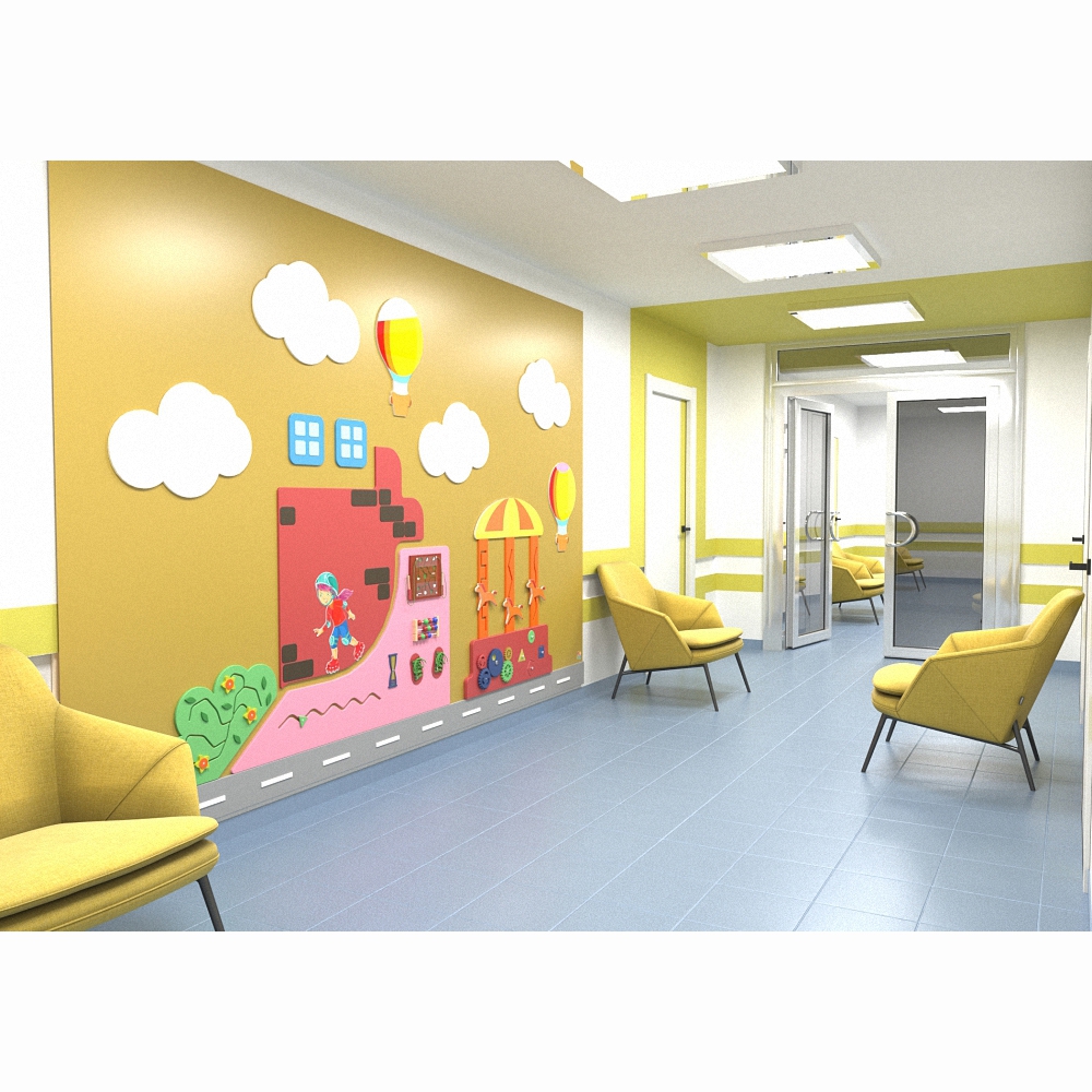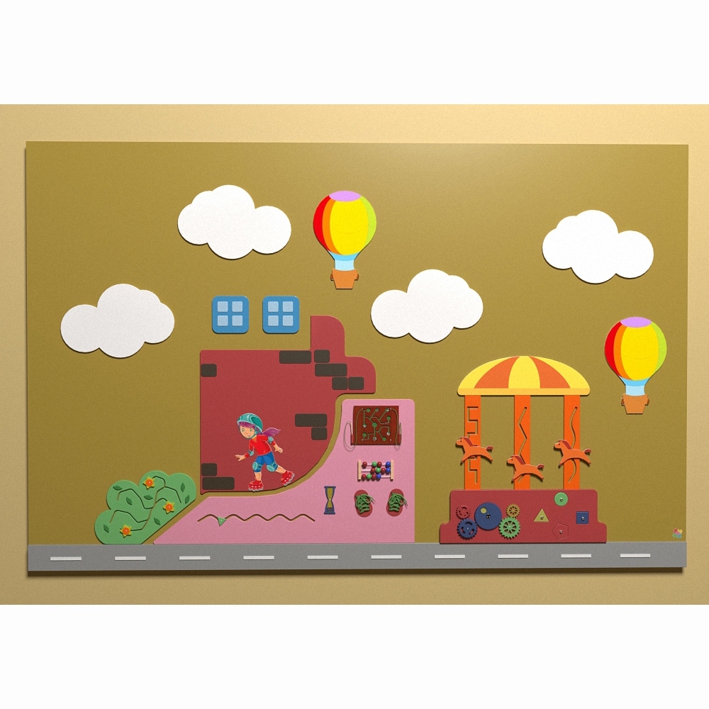 Огромная настенная панель «Активный отдых» - идеальное решение в вопросе оформления детской игровой зоны для просторных помещений. Выполнена в едином стиле и оснащена множеством развивающих и развлекательных приспособлений.