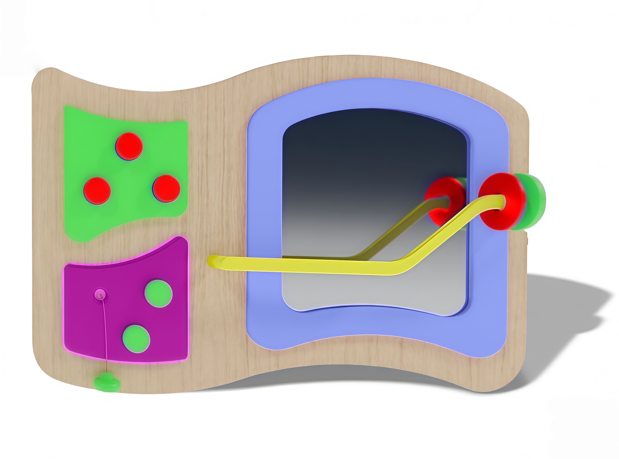Тактильно-развивающая панель для игр- это красивая игровая зона, выполненная из качественных материалов, которая не оставляет зацепок в детских ручках. Эта панель состоит из зеркала, которое привлечет внимание детей, а над ним палочка с подвижным шариком. С другой стороны находятся две панели, на них размещены круги, которые можно вытащить и засунуть обратно. Круги прикреплены веревкой к основанию ячейки, поэтому легко убираются на место. Тактильно-развивающая панель для игр заинтересует как маленьких детей, так и постарше, а родителям поможет сохранить дом в целости и сохранности. Она подойдет для домашнего использования и для специальных учреждений.