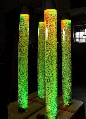 Эффект заключается в множестве поднимающихся на поверхность пузырьков воздуха. Подсветка колонны и поднимающихся пузырьков осуществляется свеодиодными матрицами с большим разнообразием плавно меняющихся оттенков . Зеркальный уголок усиливает эффект.