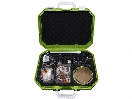 Переносной демонстрационный набор размещен в чемодане из прочного пластика и содержит необходимые материалы для выполнения не менее 9 экспериментов по данной теме: