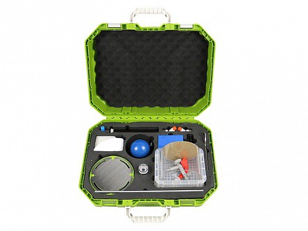 Переносной демонстрационный набор размещен в чемодане из прочного пластика и содержит необходимые материалы для выполнения не менее 7 экспериментов по данной теме: