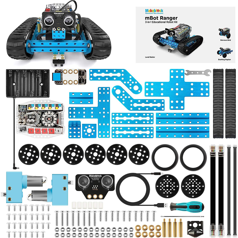 mBot Ranger это STEM-комплект 3 в 1, который включает в себя около 100 механических частей и электронных модулей. «Внедорожник», «Гонщик» и «Балансир» - это три основные формы, которые могут быть собраны из этого набора.