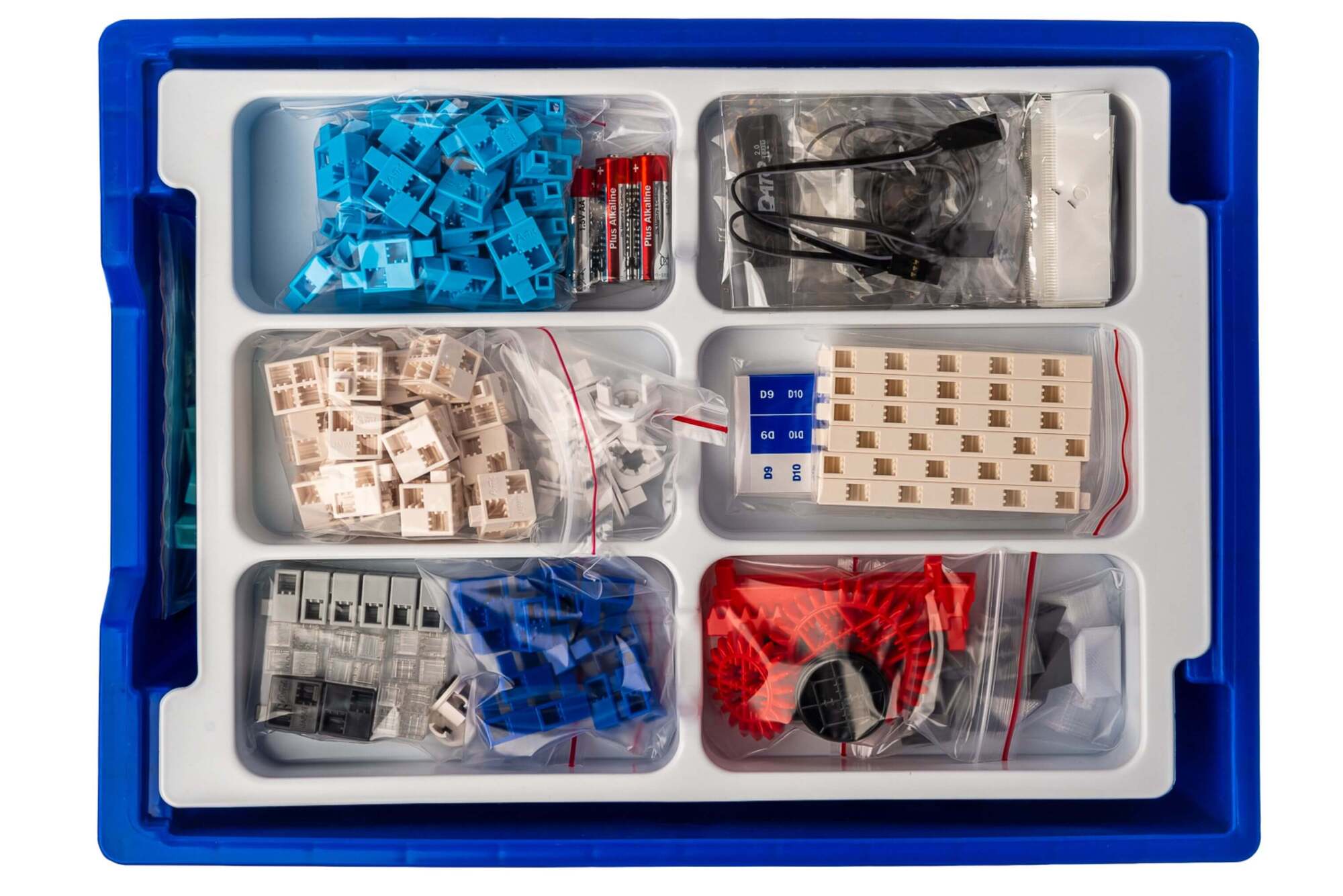 В процессе обучения дети ознакомятся с работой мотора, сервопривода, разных датчиков, познакомятся с работой и принципом действия программируемого контроллера и основами блочного программирования. Также набор позволяет сформировать навыки составления программ из блоков с изменяемыми параметрами исполнения команд.