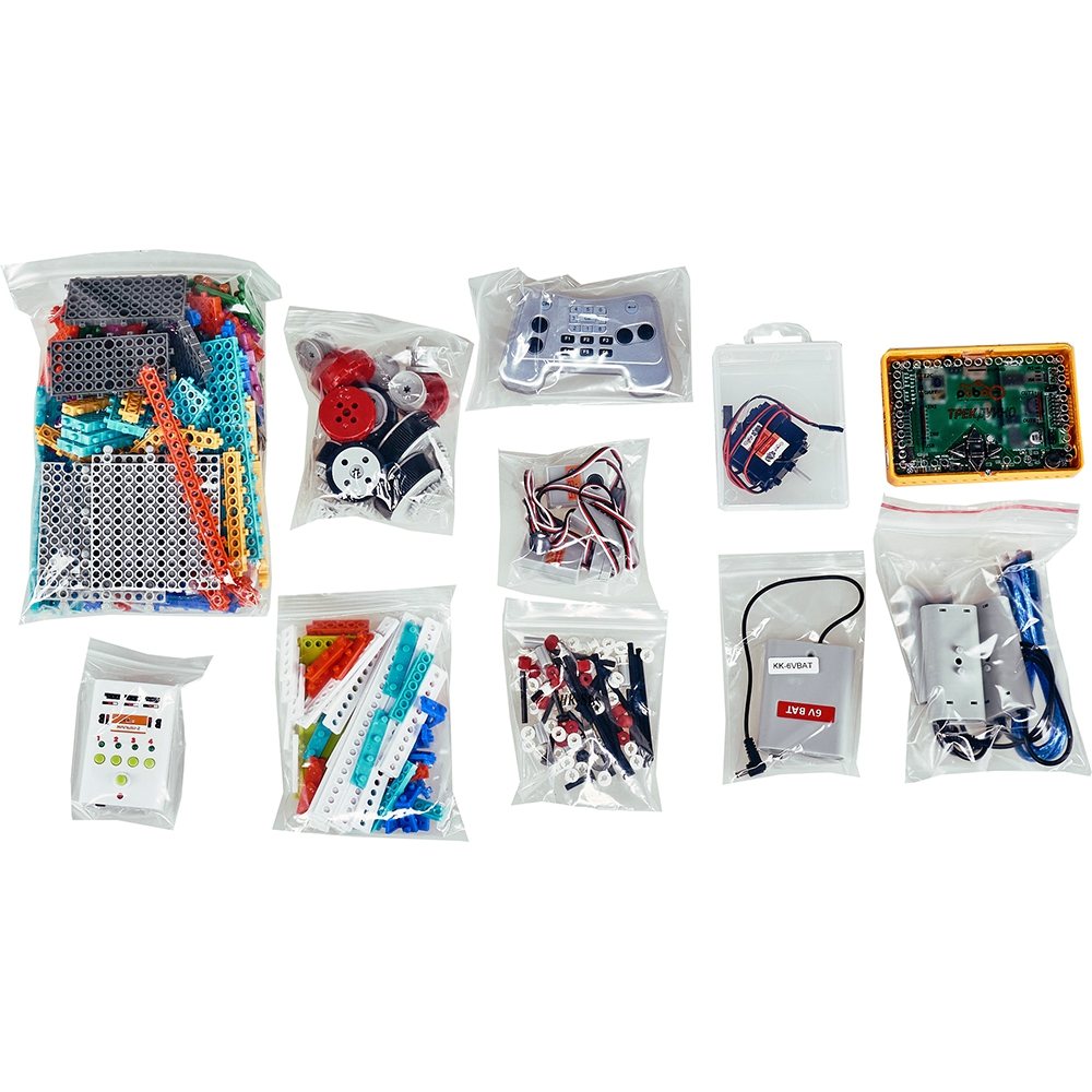 В состав набора входят не менее 302 элементов (балок, блоков, уголков, шестеренок, колесиков и др.) и электронных и электромеханических компонентов (датчиков, контроллеров, электродвигателей). Все конструктивные элементы выполнены по технологии My Robot Time и соответствуют типоразмерам этой линейки конструкторов.