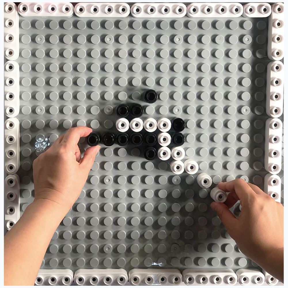 Блоки могут быть закреплены на ровную плоскую поверхность с помощью клея или винтов для создания однородной поверхности для конструирования, большого размера.