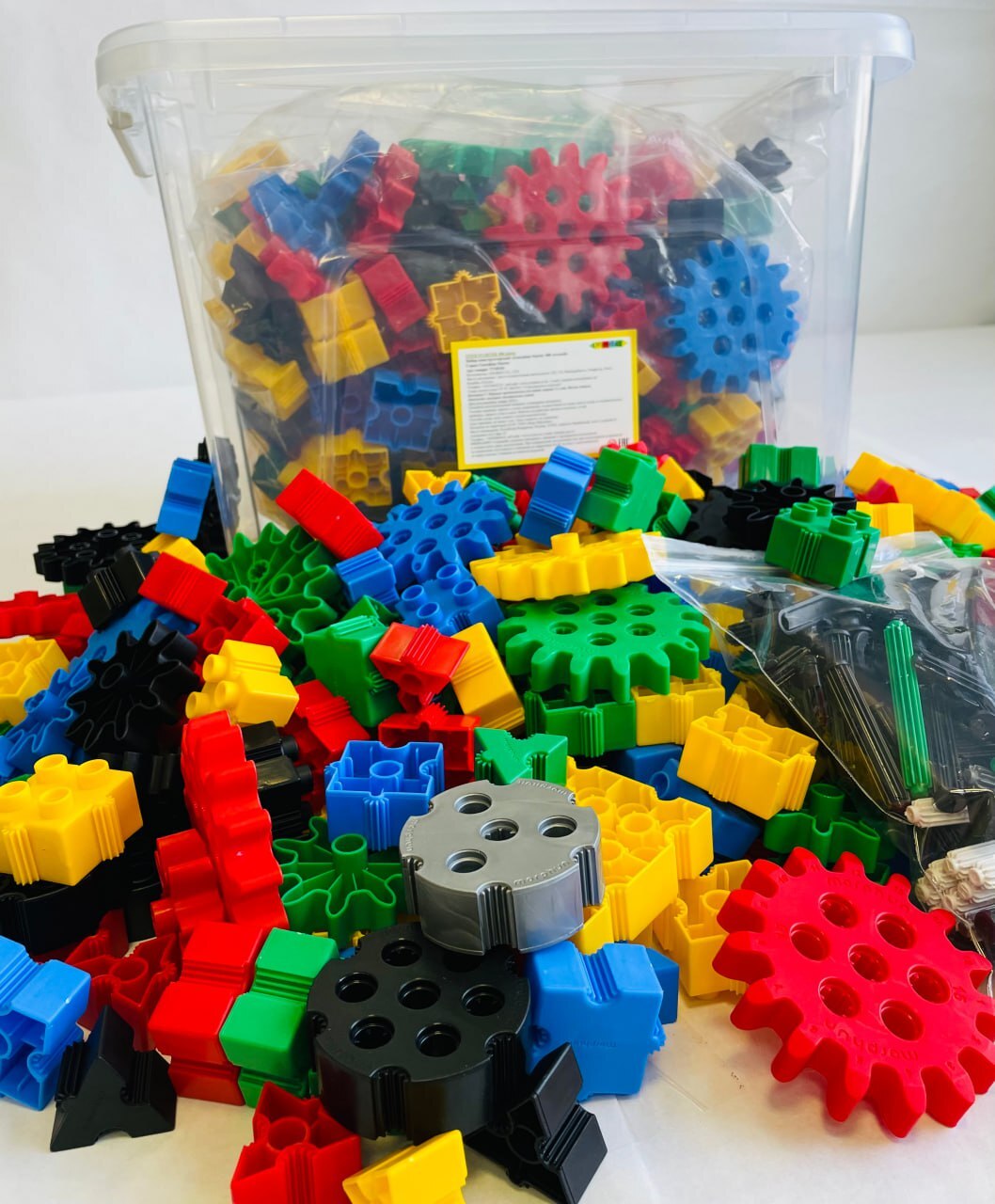 • В комплекте базовые детали, в том числе в форме колеса, шестерни, соединительные элементы;