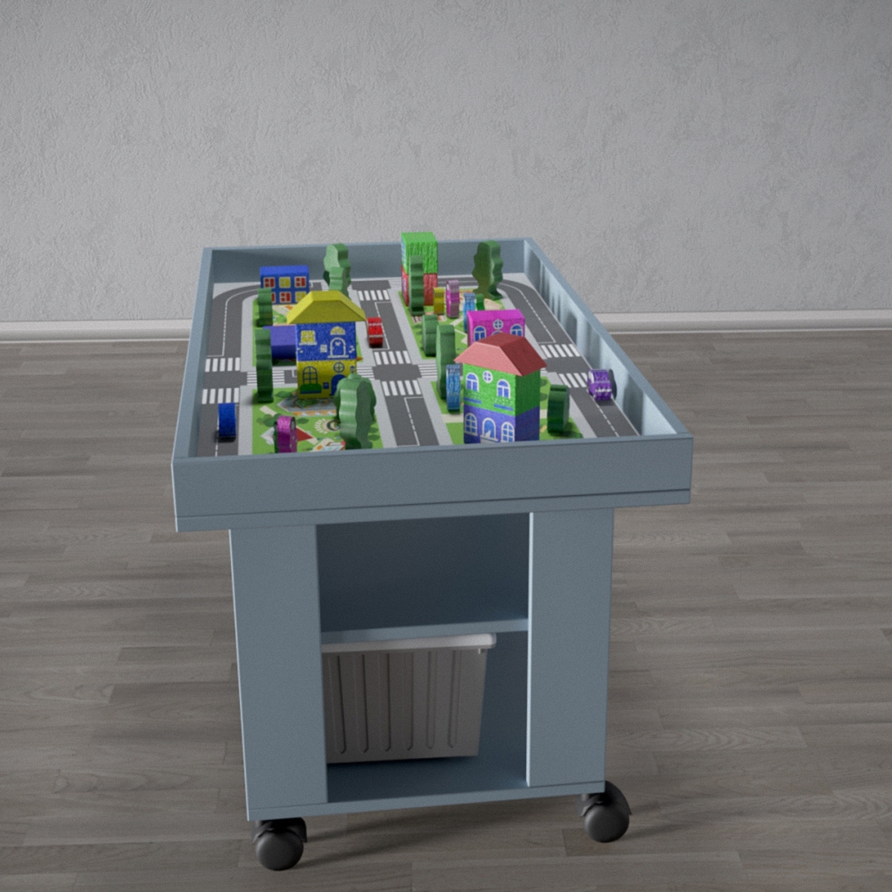 Игровой ландшафтный стол для изучения ПДД №2 просто незаменимая находка для обучения правилам дорожного движения вашего ребенка. Темболее с ним можно не только интересно учиться, но и играть. Стол выполнен из прочных материалов, на ножках стола есть колёсики, которые помогут его перемещать. У него высокие бортики, что послужит защитой от падения игрушек и обучающего материала. Есть две полки, на которых вы сможете хранить принадлежности ребенка. На одной из полок расположено два вместительных ящика, в них будет очень удобно хранить конструктор, игрушки и т.д. А благодаря нежному цвету, этот стол будет прекрасным дополнением детской комнаты. На столешнице стола изображена дорога с пешеходными переходами, разделительной полосой. А также дома, деревья и даже парк с фонтаном. В комплекте есть очень интересный и полезный конструктор с машинками, благодаря которому ваши занятия будут более реалестичными и интересными. Безусловно, ни один ребенок и даже взрослый не останутся равнодушными к э тому интересному и полезному столику. Предназначен для детей от 3-х лет.