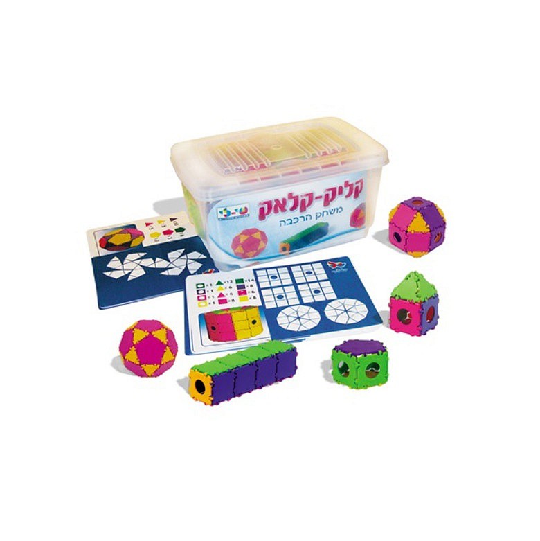 В наборе 240 пластиковых элементов с соединительными элементами типа «кликс» (шариковые), треугольники, квадраты и пятиугольники; 15 карточек-образцов.