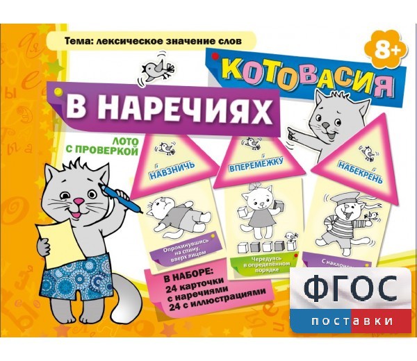 С этой игрой познакомиться, прочувствовать и запомнить значения некоторых не очень часто употребляемых наречий будет легче, если потренироваться (опять же метод уже классический) – на кошках.
