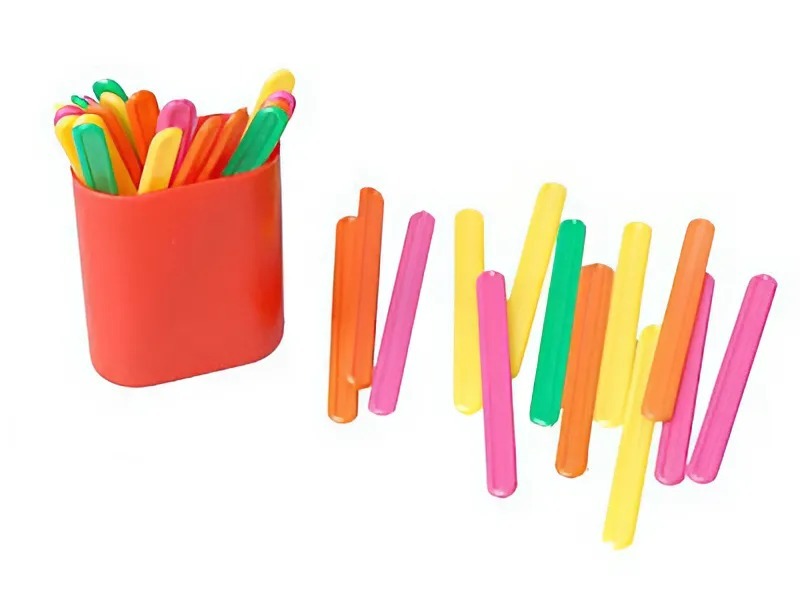 Набор состоит из 30 нетоксичных пластиковых палочек трех цветов, упакованных в пластиковый футляр.