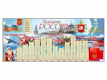 Настенное полотно предназначено для ознакомления с праздниками России и формирования у учащихся любви к своей родине и твердой гражданской позиции.