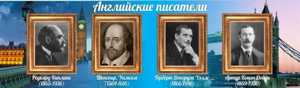 Большинство людей мечтают прочитать любимую книгу в оригинале. Этому помогает изучение иностранного языка. На необычном фоне данного стенда изображены известные портреты английских классиков: Рерьярда Киплинга, Уильяма Шекспира, Герберта Джорджа Уэллси и Артура Конан Доила. Так же представлены их годы жизни. Этот стенд впишется в интерьер любого класса. В его строение входит ПВХ-пластик, пленка с фотопечатью и ламинирующая пленка, что поможет данному стенду прослужить долгие годы, буквы не поблекнут, а краска не начнет сыпаться, что, безусловно, еще один плюс данного стенда.