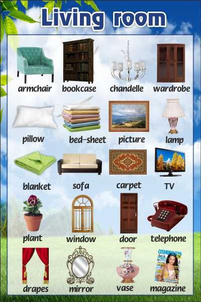 Плакат "ГОСТИНАЯ" идеально будет дополнять классную комнату для проведения уроков английского языка с детьми среднего школьного звена, при условии изучения иностранного с 1 класса - младшего и, в некоторых случаях, - старшего школьного звена.