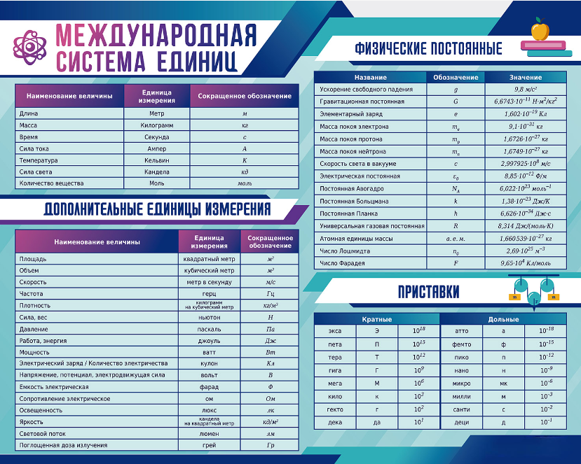 Стенд "Международная система единиц. Физические постоянные. Приставки"