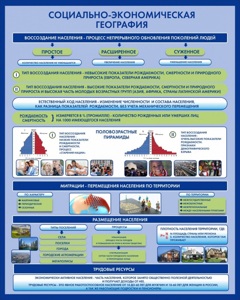 Стенд "Социально-экономическая география. Воссоздание населения"