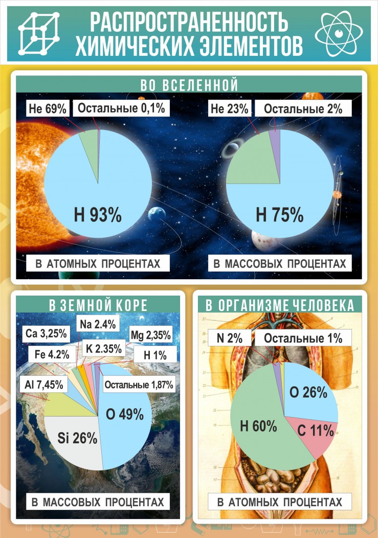 Главная Каталог Стенды Кабинеты Химия Стенд "Распространенность химических элементов"
