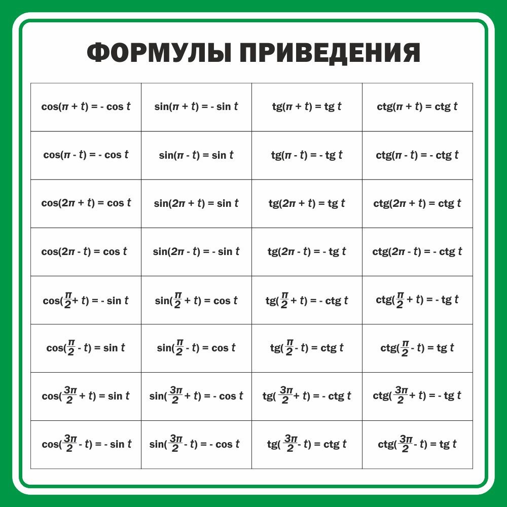 Главная Каталог Стенды Кабинеты Математика Стенд "Формулы приведения"