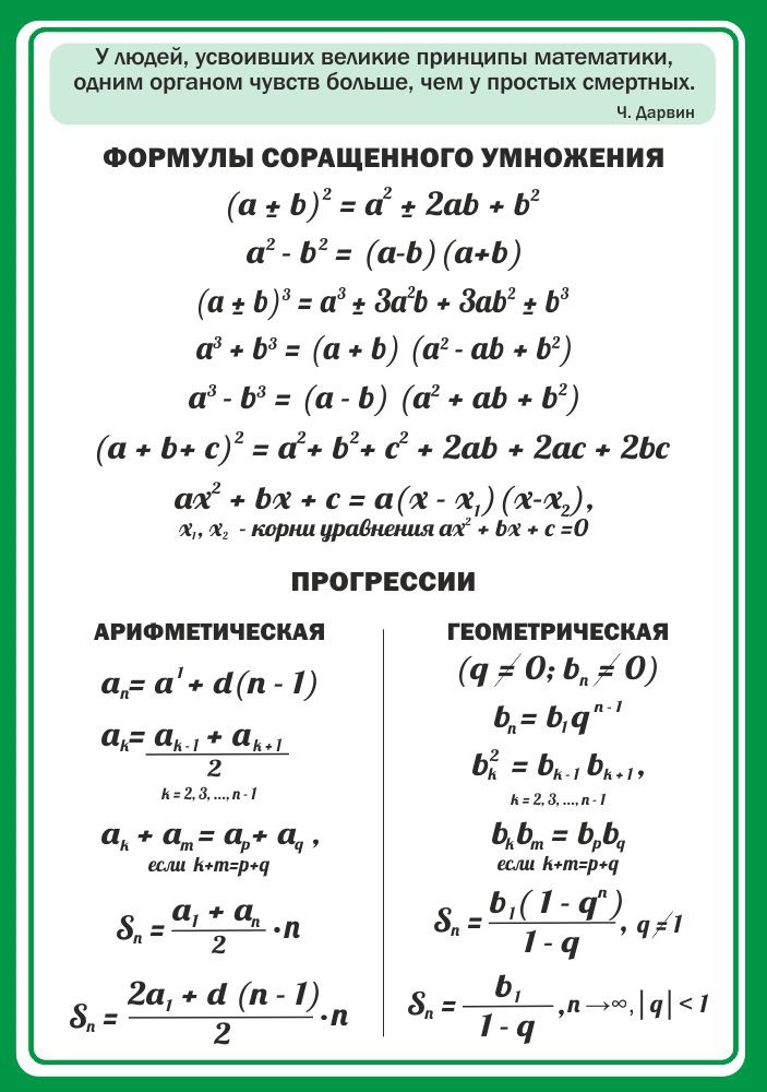 Главная Каталог Стенды Кабинеты Математика Стенд "Формулы сокращенного умножения" Вариант 1