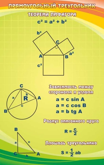 Итак, стенд с прекрасной подачей темы о прямоугольных треугольниках. Конечно, с иным стендом, объяснить подобные чудеса, школьникам было бы сложнее. Но, если в наличии такой стенд, он не только украсит кабинет, но и «расшевелит» память каждого ученика. Собственно, дизайн стенда, моментально бросается в глаза. Более того, сведения в подобной «обертке», и учителям настроение поднимут. Современный и интересный стенд. Это ни черно-белые учебники, связанные с точными науками. Это намного лучше. Конечно, никаких карманов, на таком стенде не может быть и в помине. Четкая сжатая информация, но все необходимое, «схвачено».