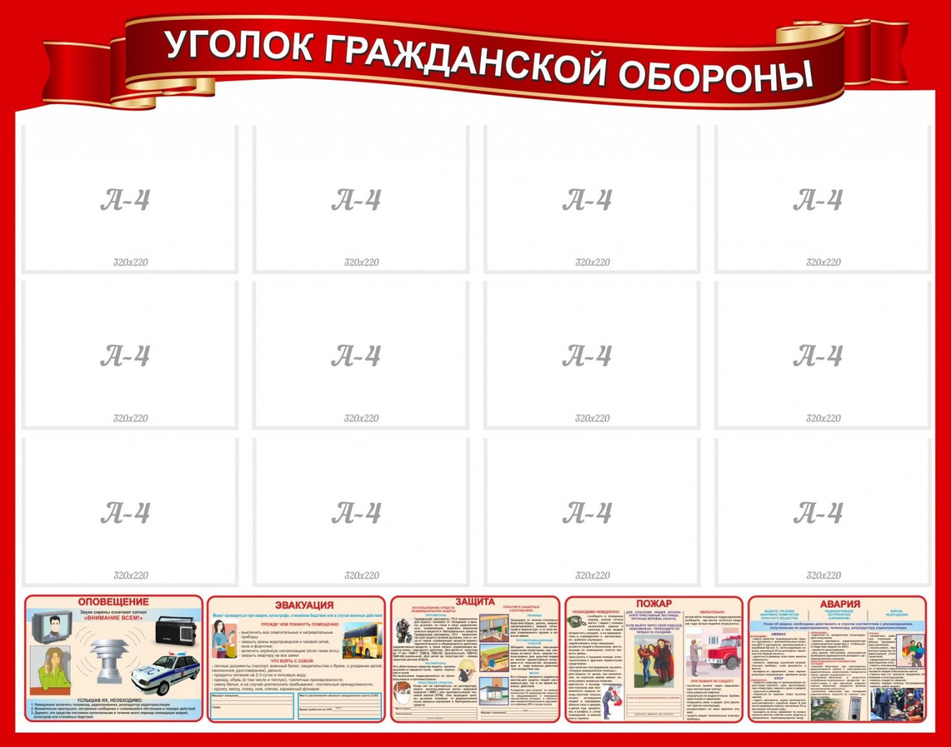 Главная Каталог Стенды Кабинеты ОБЖ и НВП Стенд "Уголок гражданской обороны"