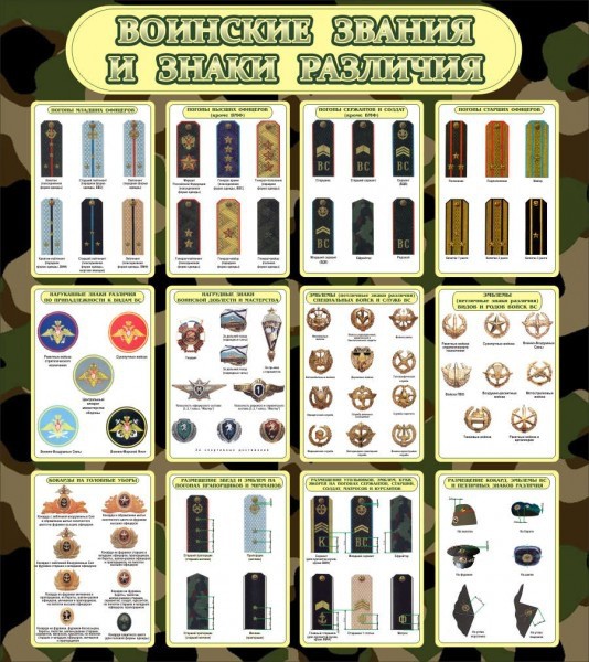 Стенд "Воинские звания и знаки различия" - fgospostavki.ru - Киров