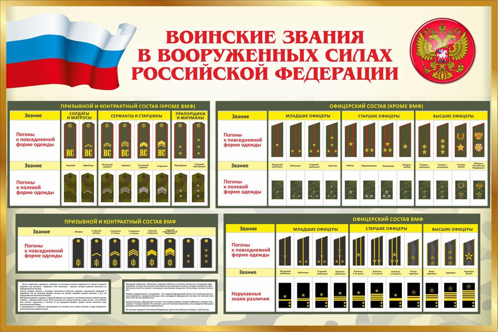 Главная Каталог Стенды Кабинеты ОБЖ и НВП Стенд "Воинские звания в вооруженных силах РФ"