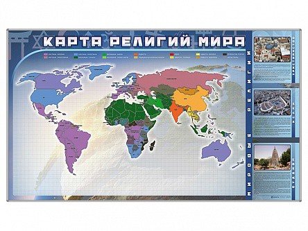 Магнитно-маркерная доска "Карта религий мира" + комплект тематических магнитов - fgospostavki.ru - Киров