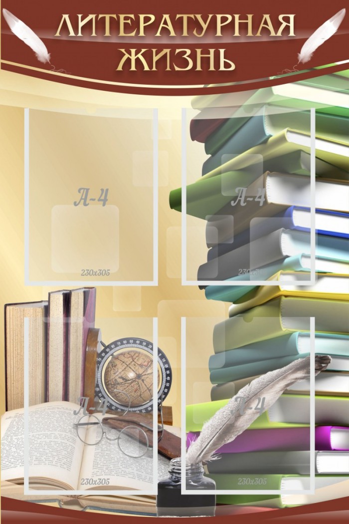 Очень важно, чтобы ученик в свободное время от учебы мог читать полезную литературу, которая способствует его учебе и повышает уровень знаний. С помощью стенда «Литературная жизнь» преподаватель может достаточно быстро проинформировать ученика про нужную и интересную литературу, а также предоставит материал, необходимый для школьной программы. Расположенные на стенде карманы для сменного материала является отличным помощником для учителя в виде наглядного предоставления нужной литературы для ученика, по мере прохождения школьной программы и ее усвоения материал без особой сложности меняется.