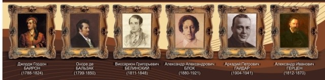 В обязанности каждого преподавателя литературы и русского входит вовлечение учеников в русскую поэзию и русских поэтов. Для того, чтобы каждый ученик хорошо знал классических поэтов и писателей, в каждом кабинете русского языка и литературы должен располагаться стенд «Великие писатели и поэты», где красочно отображены шесть самых популярных поэтов девятнадцатого века - Байрон Д.Г, Гайдар А.П, Блок А.А и т. д. Такой стенд дети могут использовать как наглядное пособие на уроках литературы, что в будущем поможет им лучше разбираться в русской поэзии и знать всех русских потов в лицо.