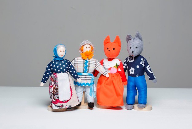 Перед вами – шагающий театр «Волк и лиса», в который входят следующие персонажи: волк, лиса, дед, баба.