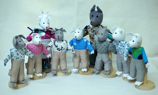 Перед вами – шагающий театр «Волк и 7 козлят», в который входят следующие персонажи: волк, коза, 7 козлят.