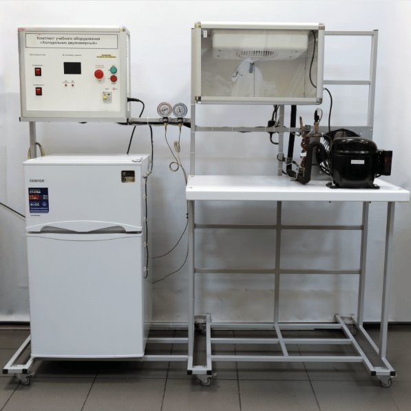 Типовой комплект учебного оборудования «Холодильник двухкамерный» предназначен для демонстрации работы бытового двухкамерного компрессионного холодильника и изучение технологических операций, используемых при эксплуатации и ремонте холодильников, а также для построения циклов и внешних характеристик, расчета параметров холодильных машин, динамических характеристик теплообменных аппаратов. Комплект выполнен согласно ТУ 32.99.53–001–09519063– 2019 и имеет соответствующий сертификат производителя ГОСТ Р на данный вид продукции и сертификат качества ИСО 9001-2015.
