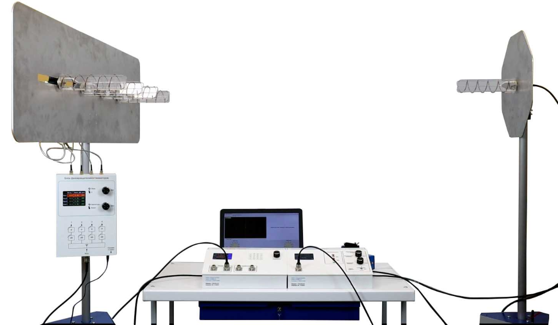 В лабораторной установке исследуется линейная решетка, состоящая из спиральных излучателей, работающая в режиме приема и режиме передачи. В качестве передающей антенны используется отдельная спиральная антенна, либо вибраторная антенна.